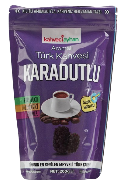 Karadutlu Türk Kahvesi, Türk kahvesinin klasik yoğun tadını karadutun kendine has meyvemsi ve ferah aromasıyla bir araya getiren özel bir üründür. Hazır kahveler kategorisinde yer alan bu kahve, geleneksel lezzeti meyveli bir dokunuşla zenginleştirerek farklı bir içim deneyimi sunar. Karadutun hafif tatlı ve ekşimsi aroması, kahvenin güçlü yapısıyla dengeli bir şekilde birleşerek her yudumda benzersiz bir tat ortaya çıkarır.